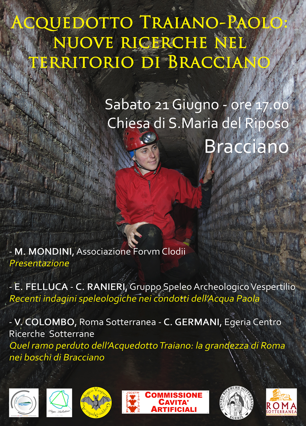 La conferenza si terrà alle ore 17.00 presso la Chiesa di S. Maria del Riposo a Bracciano. Per Roma Sotterranea interverrà Vittorio Colombo con l'intervento: "Quel ramo perduto dell'acquedotto Traiano: la grandezza di Roma nei boschi di Bracciano".