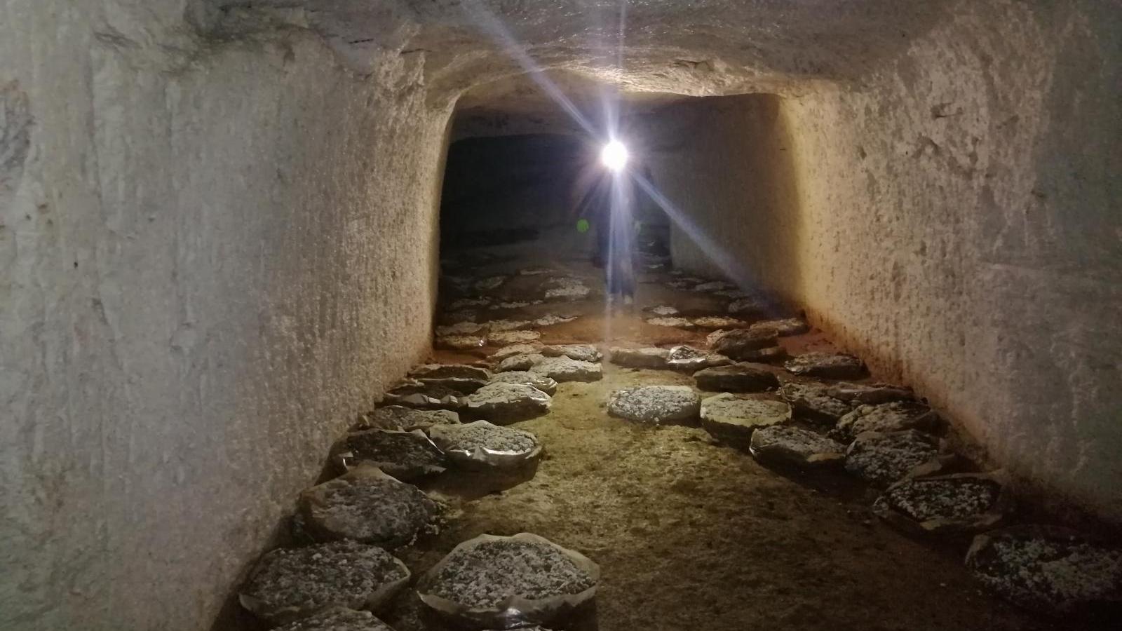 Gli speleologi sono scesi all'interno della voragine per circa 7 metri di profondità, alla base del cono di riempimento per verificare la prosecuzione degli ambienti ipogei o verificare se si trattasse di ambienti confinati dal crollo stesso. La discesa nella voragine ha permesso di osservare una prosecuzione delle gallerie in due direzioni a quote nettamente più basse, riutilizzate come fungaia in epoca recente. Gli ambienti intercettati si sviluppano per una superficie di circa 500/1000 metri quadrati verosimilmente sino a lambire la Chiesa di Santa Maria Madre della Misericordia. Le gallerie perlustrate risultano a loro volta confinate da crolli e non più collegate al vasto reticolo caveale di Villa de Sanctis, anche a seguito dei lavori per la realizzazione della Metro C.