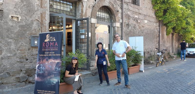 Il pomeriggio è ormai inoltrato; sulla soglia della sede di Roma Sotterranea diversi soci si danno da fare pronti ad accogliere i visitatori.
