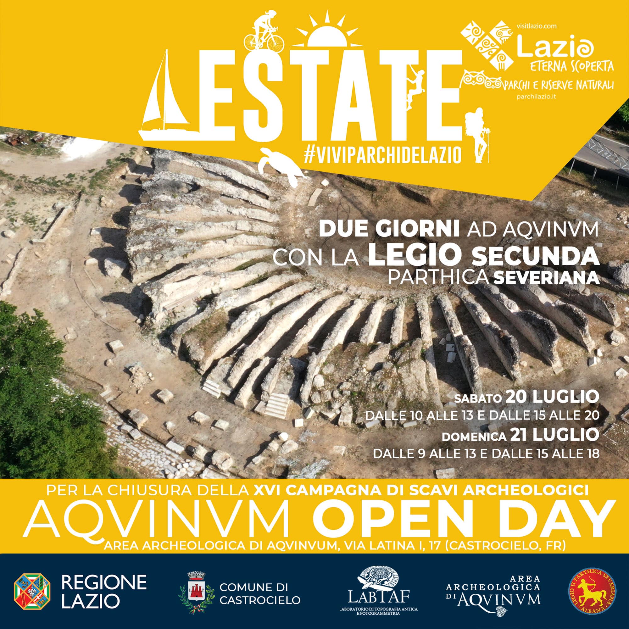 La lunga vicenda di Aquinum si conclude nel VI secolo d.C. con l'arrivo dei Longobardi con saccheggi, devastazioni e la fuga dei suoi ultimi abitanti. A quell'epilogo drammatico sono sopravvissuti i monumenti che è possibile ammirare nell'area archeologica: il teatro, l'edificio absidato noto come il Tempio di Diana, il Capitolium, un anfiteatro e il grande complesso delle Terme Centrali. Quello che rimane oggi dell'antica colonia di Aquinum lo potete trovare a 100 km da Roma; gli scavi (sempre aperti nel fine settimana e su prenotazione nei giorni feriali) si trovano sul territorio di proprietà del comune Castrocielo per una superficie di 8 ettari.