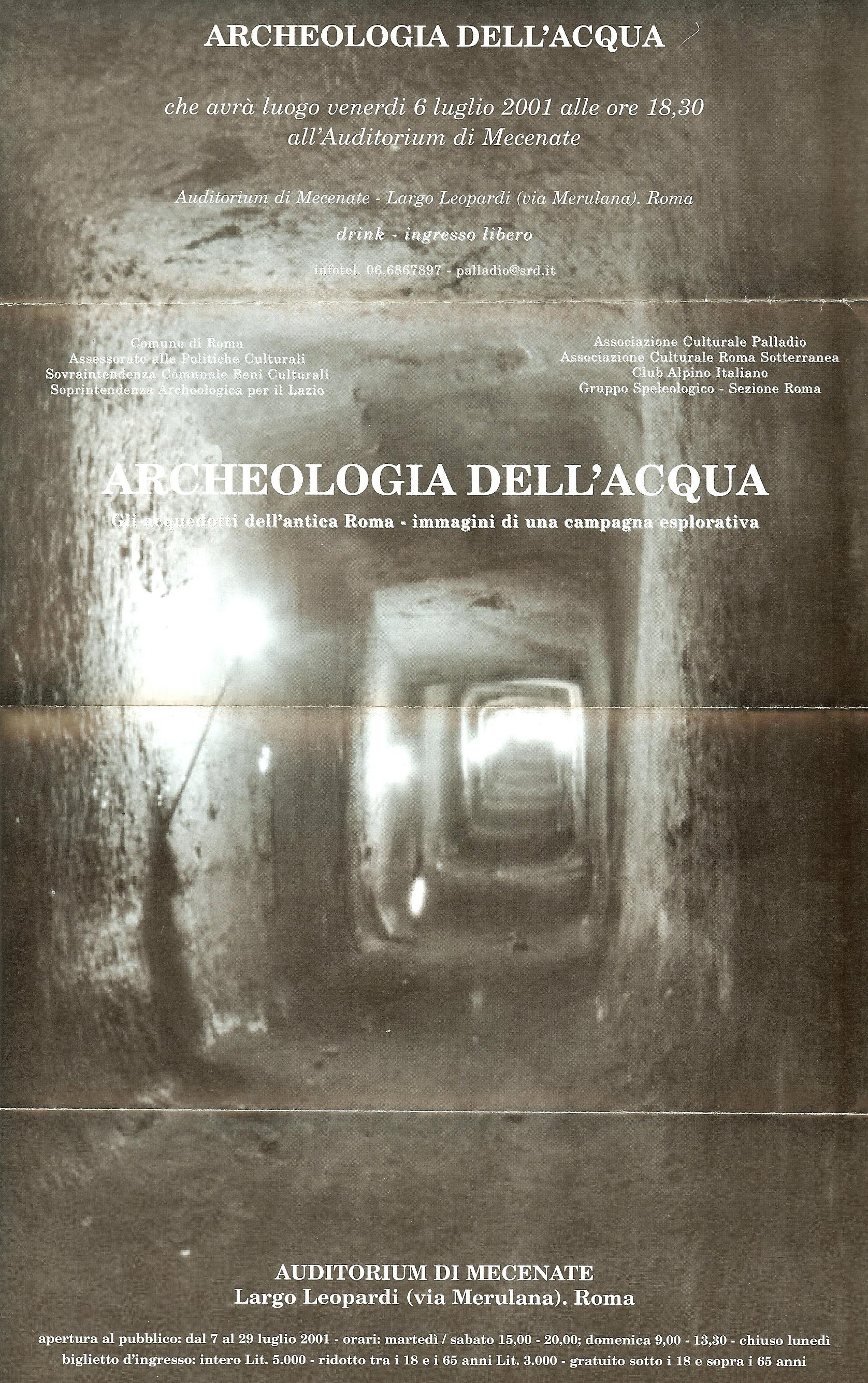 Conferenza e Mostra fotografica organizzata presso l'Auditorium di Mecenate da Roma Sotterranea e dal CAI in collaborazione con la Sovaintendenza Capitolina ai Beni Culturali.