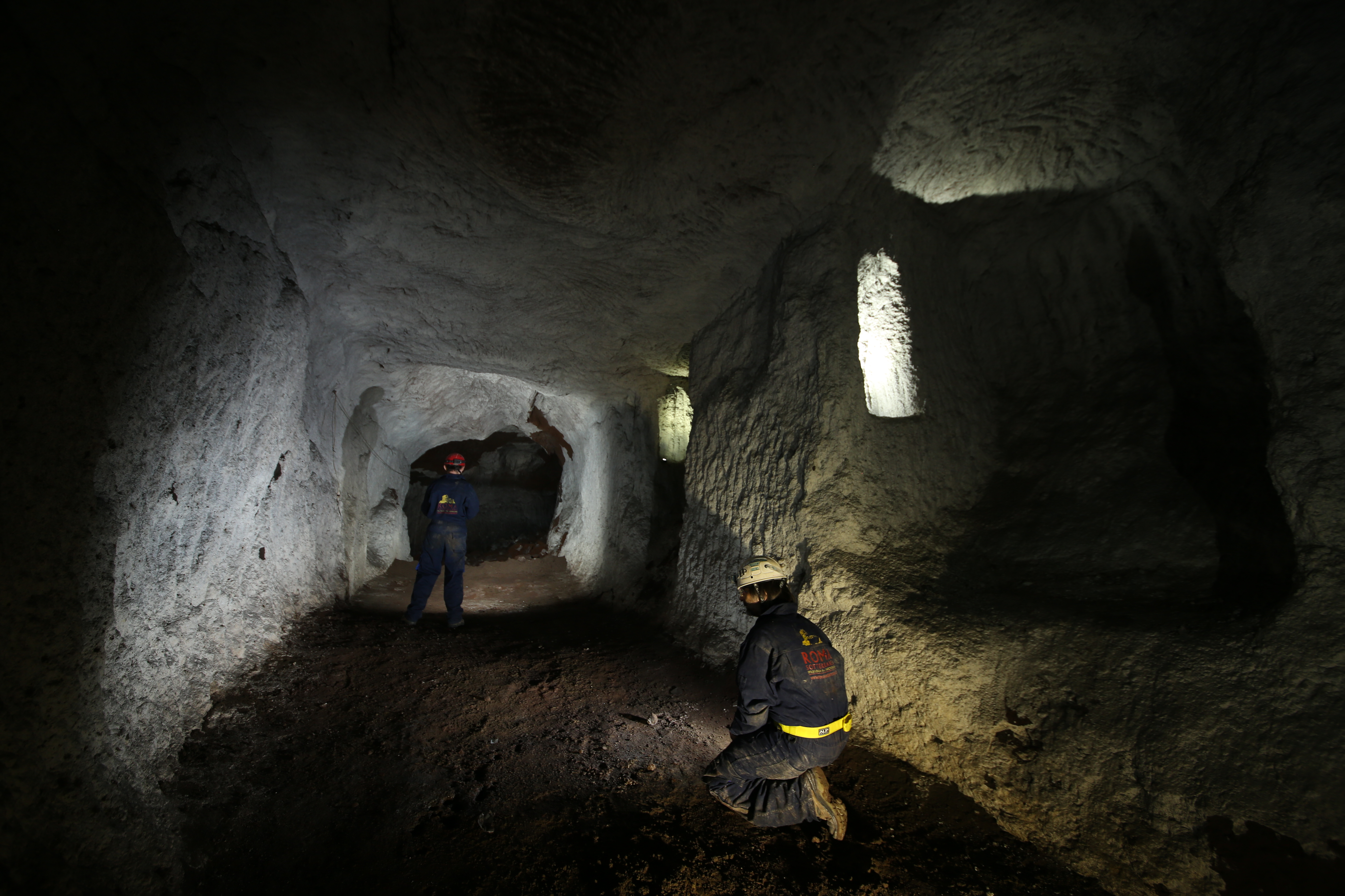 - Anno 2012: iniziano le attività di esplorazione ed approfondimento organizzate in autonomia dal nostro gruppo speleologico; si procede ad esplorare ambienti di cava e di fungaia per diverse centinaia di migliaia di metri, giungendo in zone fino ad oggi non note e mai mappate. Si rinvengono, durante le esplorazioni, altri accessi in terreni privati (oggi adeguatamente chiudi e tamponati), veri e propri "uffici" abbandonati utilizzati ai tempi della coltivazione dei funghi, e numerose situazioni di dissesto più o meno grave. Il rilievo delle gallerie ispezionate è stato svolto con metro laser per la misura delle distanze e bussola per la misura degli angoli; adeguate procedure di verifica hanno permesso di raggiungere un errore complessivo delle misurazioni inferiori all'1%.