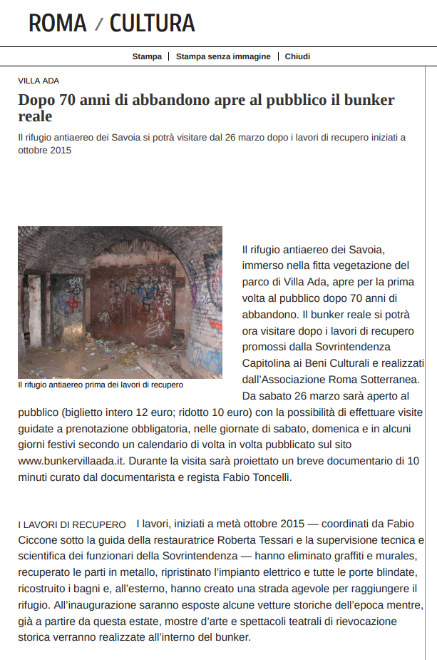 Tags associati a questo articolo: Bunker, Rassegna stampa, Villa ada