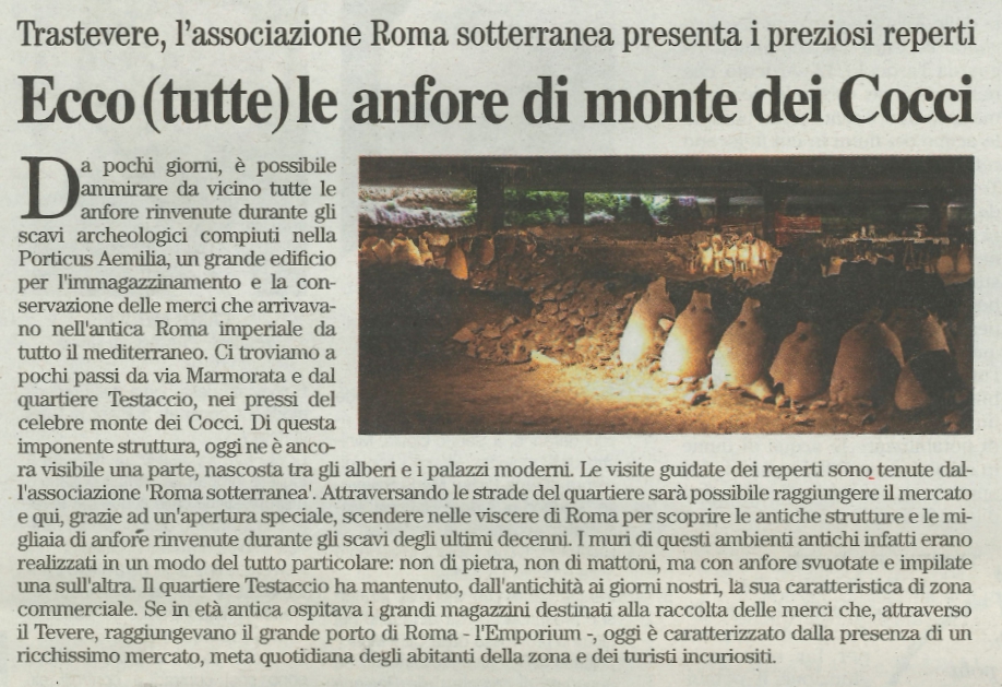 Trastevere, l'Associazione Roma Sotterranea presenta i preziosi reperti.