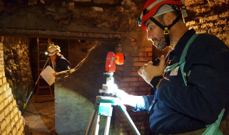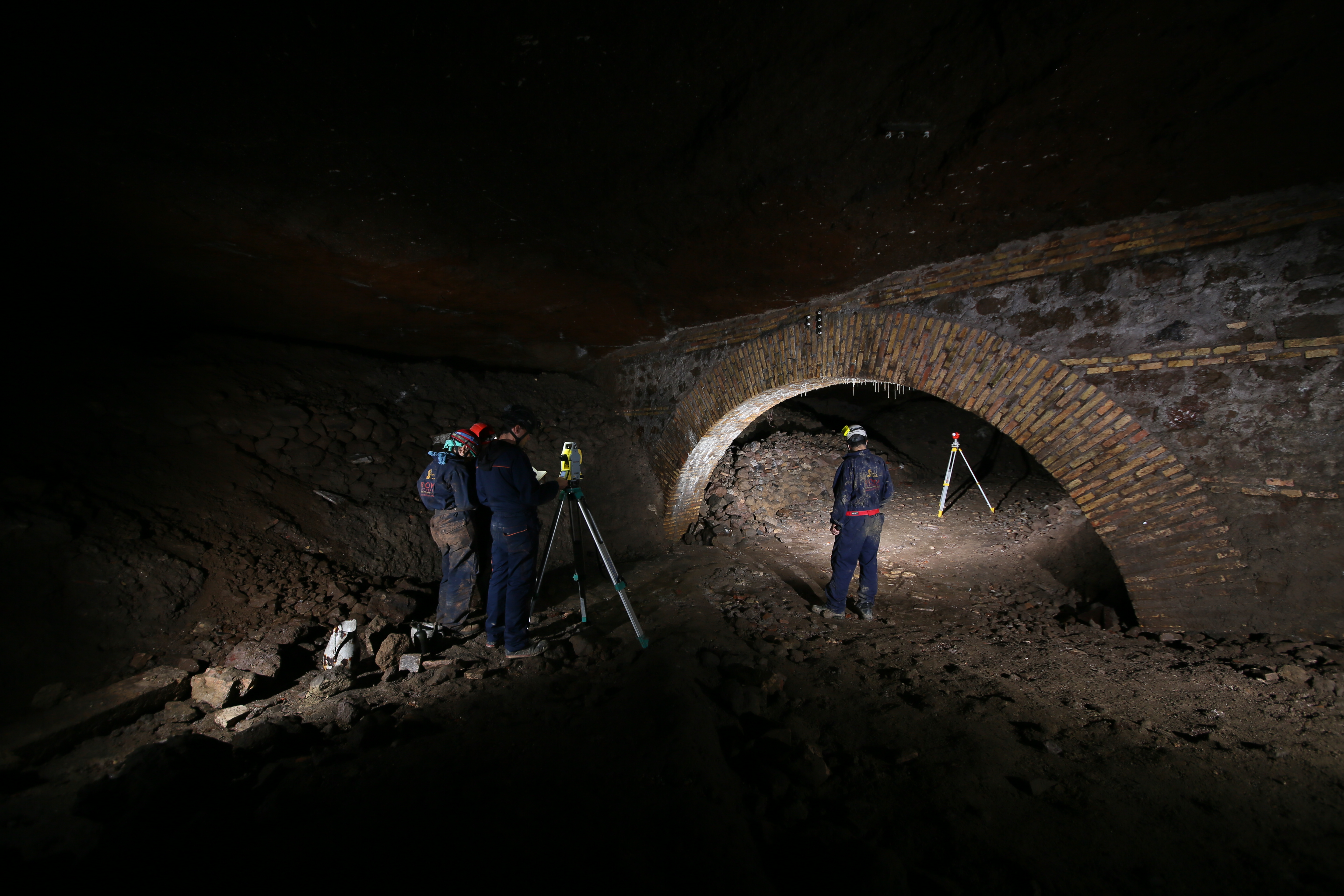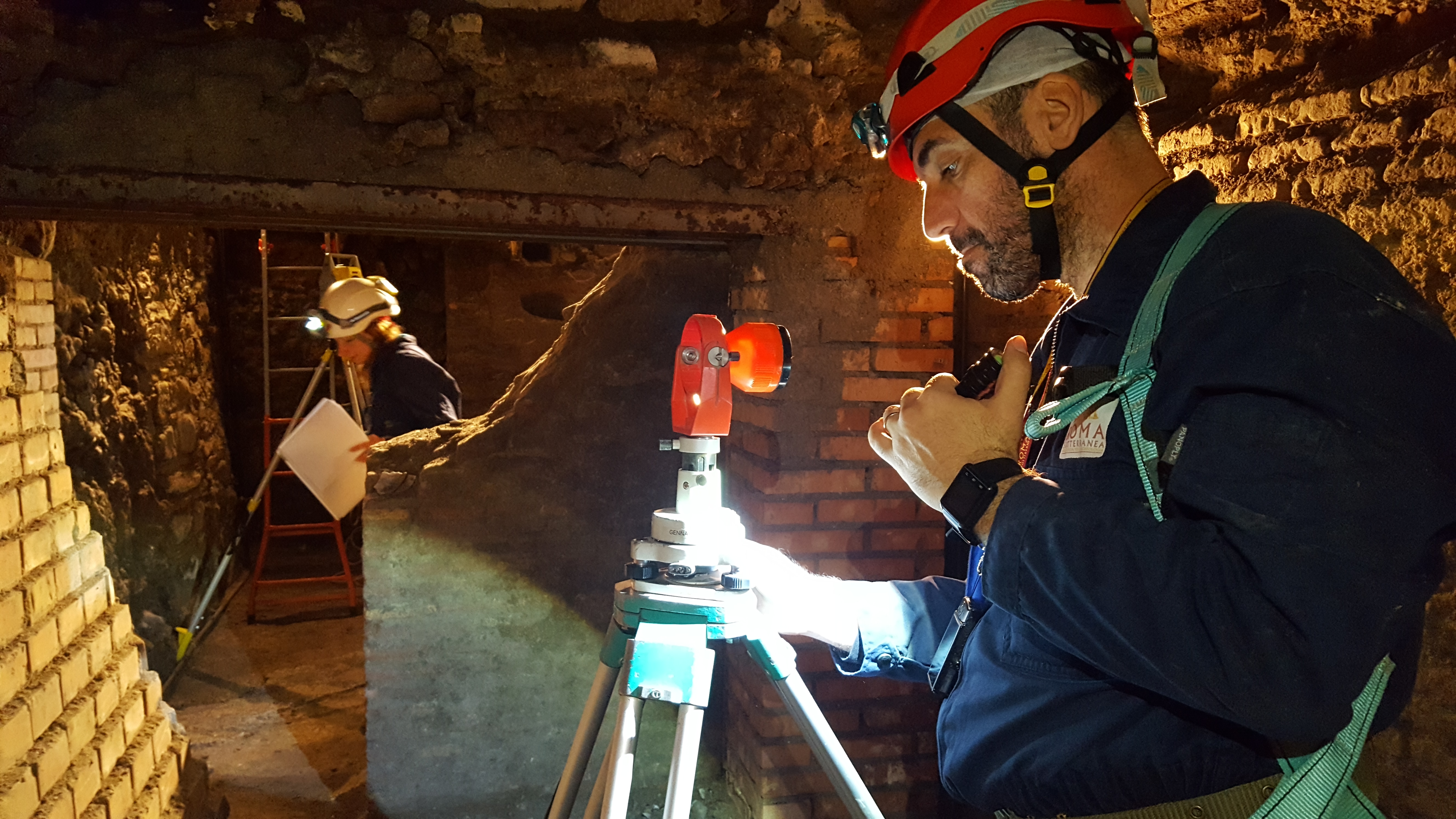 Roma Sotterranea in azione nelle attività di rilievo speditivo, con stazione totale o con laser scanner.