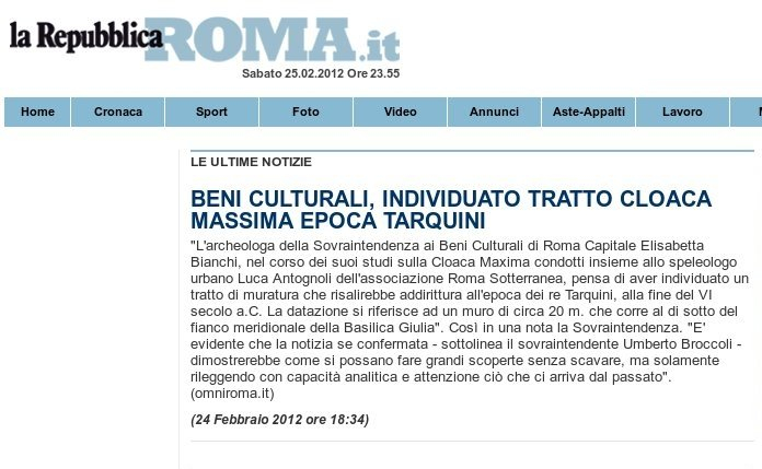 Tags associati a questo articolo: Cloaca maxima, Rassegna stampa