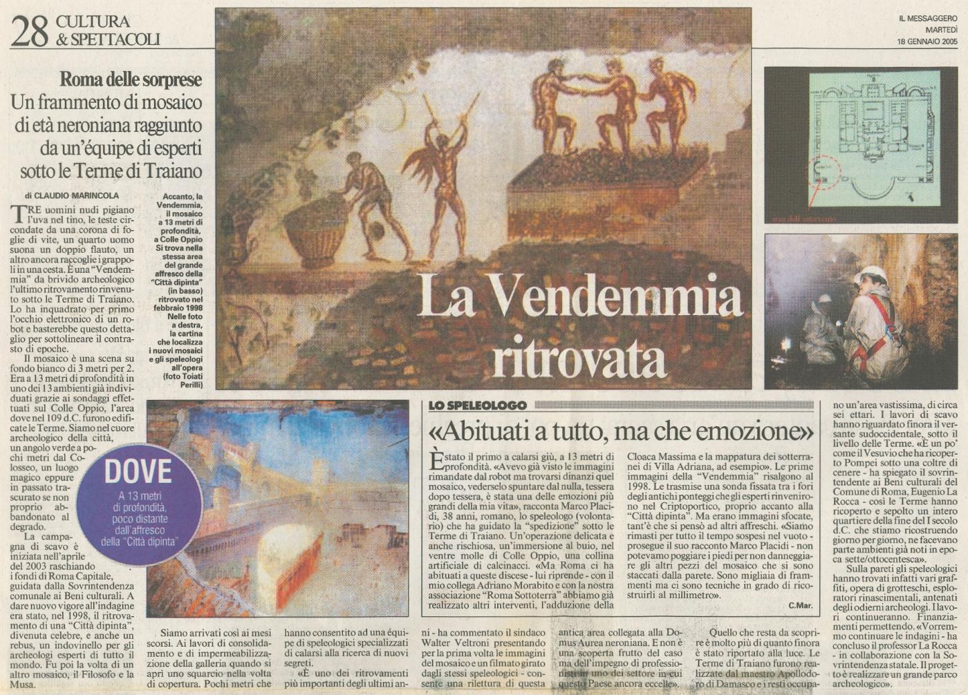 Roma delle sorprese: un frammento di mosaico di età neroniana raggiunto da una equipe di esperti sotto le Terme di Traiano. Lo speleologo Adriano Morabito: "Abituati a tutto, ma che emozione"