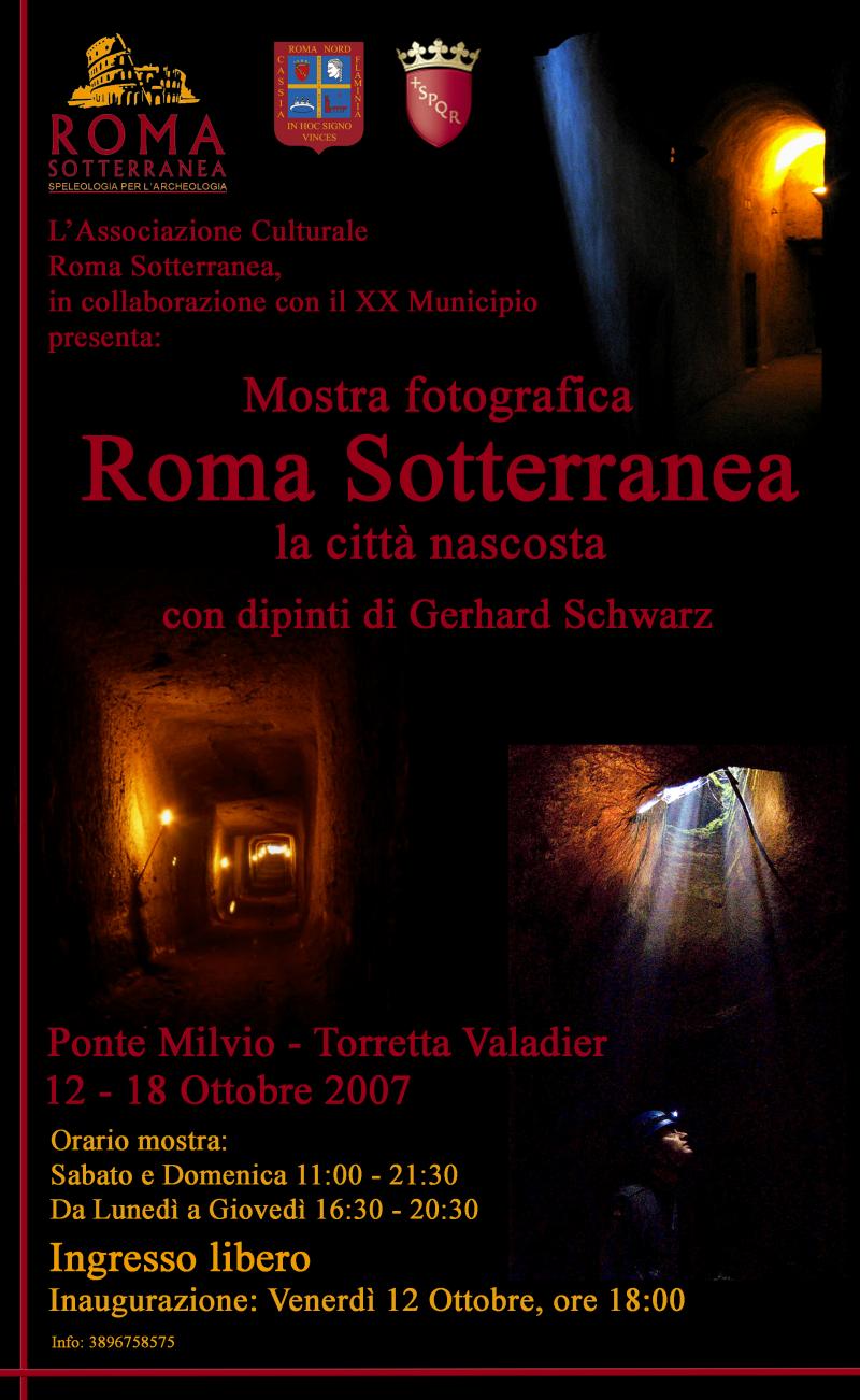 Dal 12 al 18 ottobre 2007 Roma Sotterranea ha organizzato, in collaborazione col XX Municipio, una mostra fotografica dal titolo: "Roma Sotterranea, la città nascosta".
