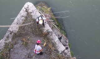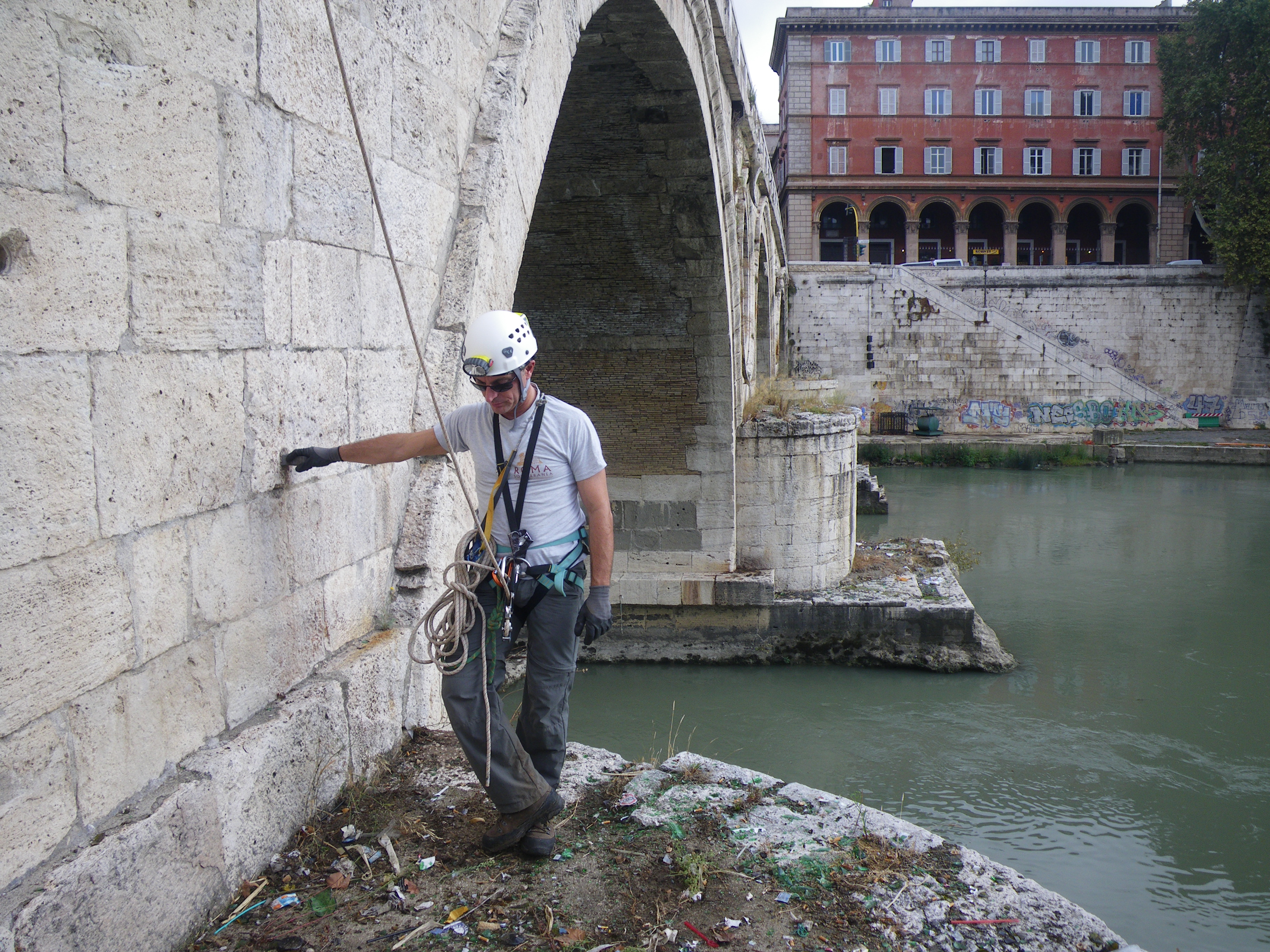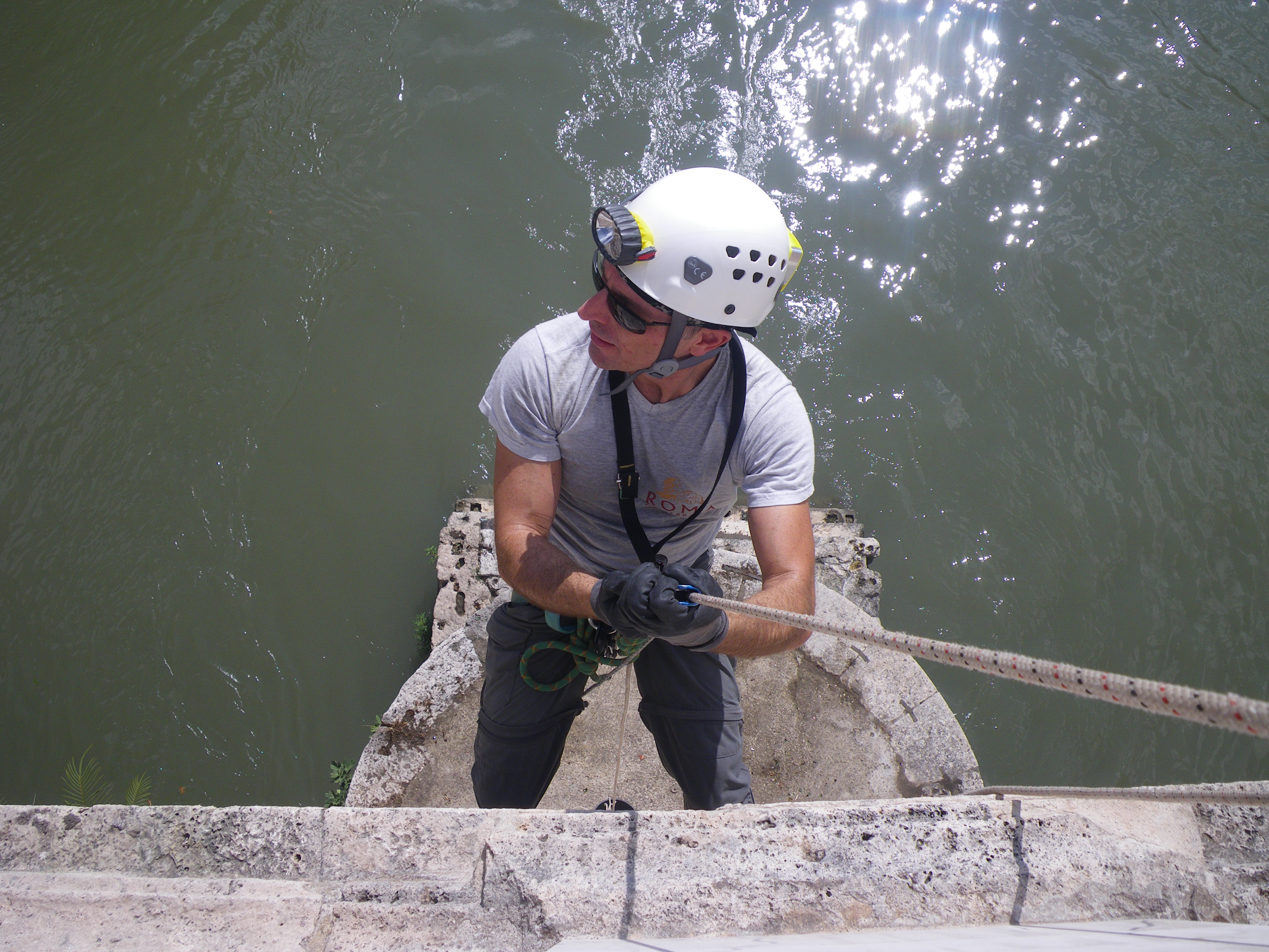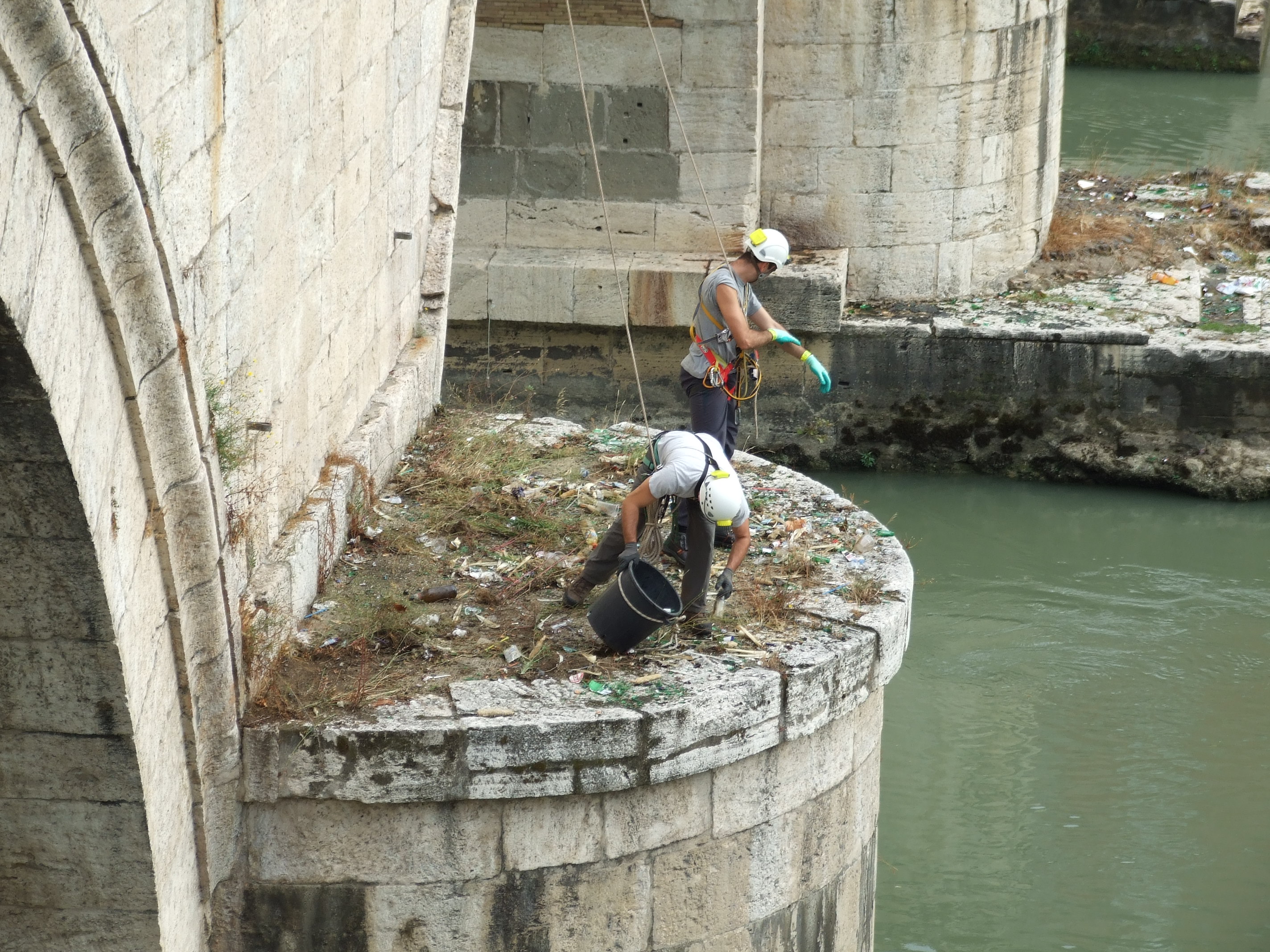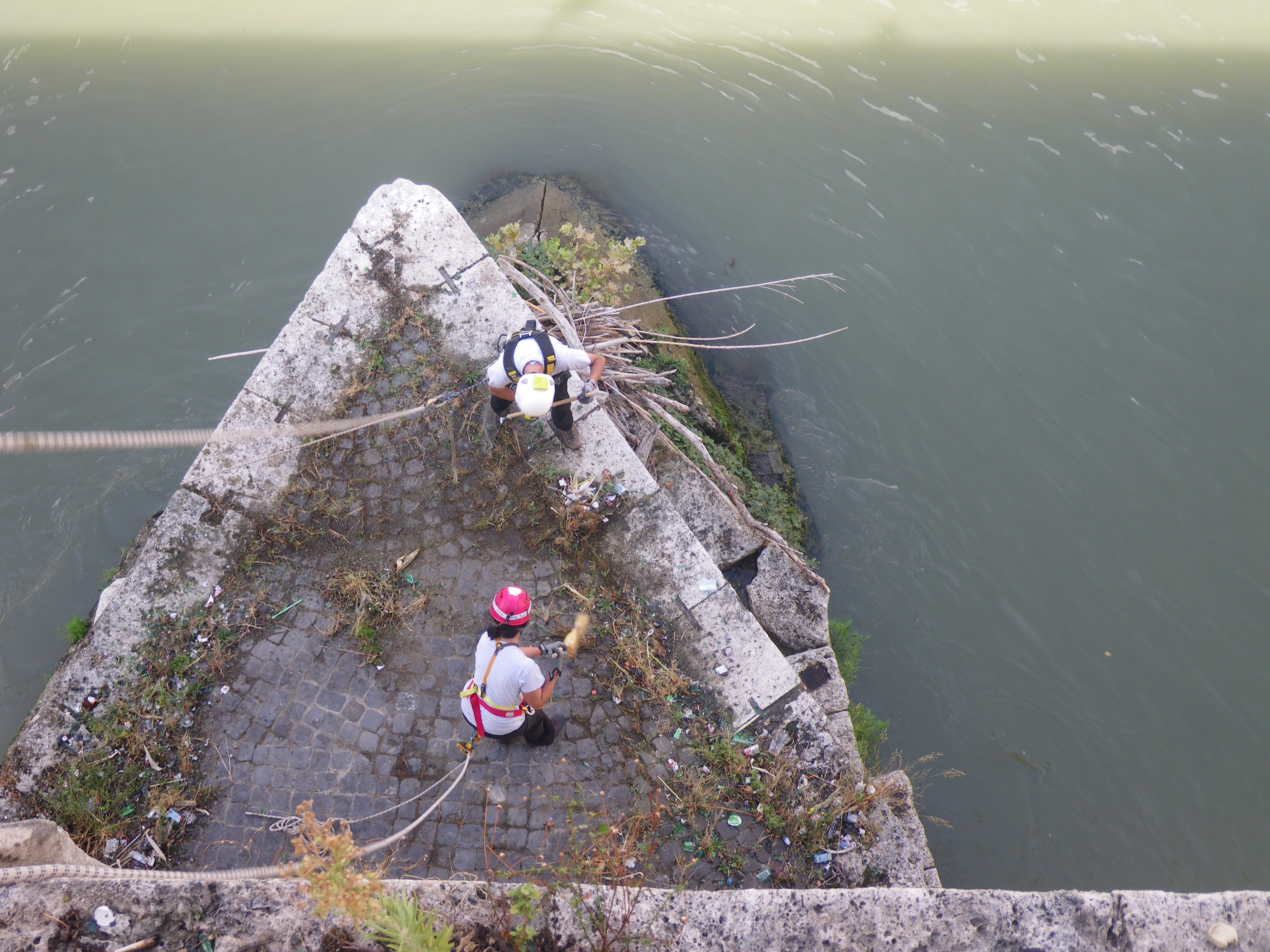 Per il terzo anno consecutivo, Roma Sotterranea ha messo a disposizione le proprie competenze su fune per effettuare una pulizia approfondita dei piloni di Ponte Sisto.