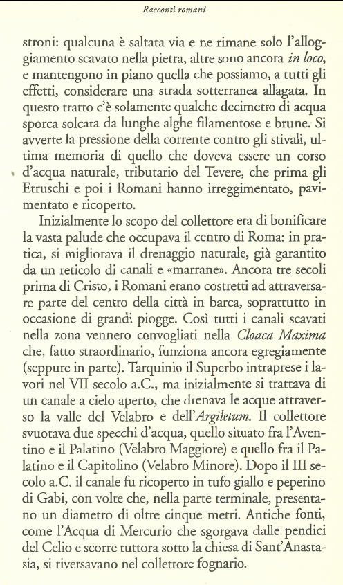Nel nuovo libro di Mario Tozzi "Italia Segreta" edito da Rizzoli, a pagina 42: "Sul lato sinistro (della Cloaca Massima, muovendoci verso il Tevere n.d.r.) si apre un canale laterale, parzialmente esplorato da speleologi e archeologi dell'associazione Roma Sotterranea....".
