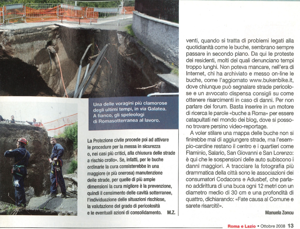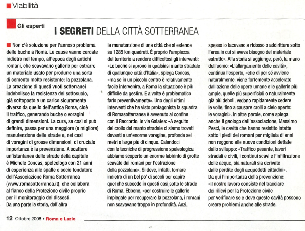 Nel numero di Ottobre 2008 di Quattroruote, alle pagine 12 e 13 dell'inserto "Roma", troverete l'articolo "I segreti della città sotterranea", realizzato in collaborazione con ROMA SOTTERRANEA.