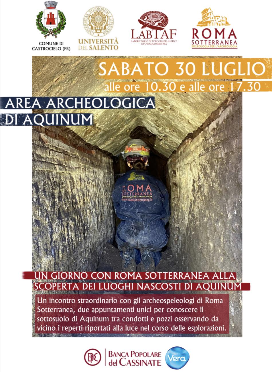 Roma Sotterranea organizza un open day per conoscere il sottosuolo di Aquinum tra condotti e pozzi, osservando da vicino i reperti riportati alla luce nel corso delle nostre esplorazioni.