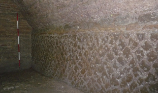 Ambiente "A" - parete SE prima e dopo la pulizia effettuata da Roma Sotterranea