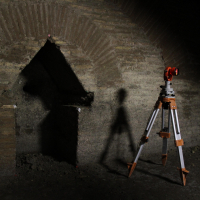 Successivamente alla pulizia ci si è occupati della realizzazione di un primo rilievo speditivo, eseguito con bussola e distanziometro laser, finalizzato alla redazione di una planimetria di massima degli ambienti ipogei da poter utilizzare come riferimento nella nomenclatura degli ambienti e delle pareti. Terminate le operazioni di rilievo speditivo si è passati al rilievo approfondito della singole muratura e della scala di accesso agli ambienti ipogei al fine della corretta collocazione degli ambienti sulla pianta catastale.