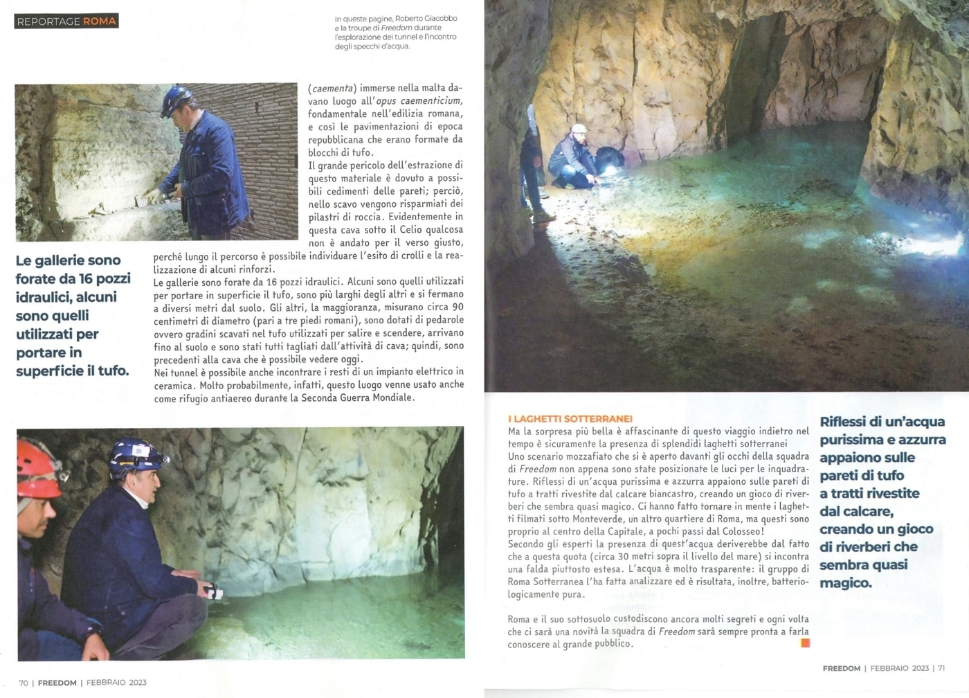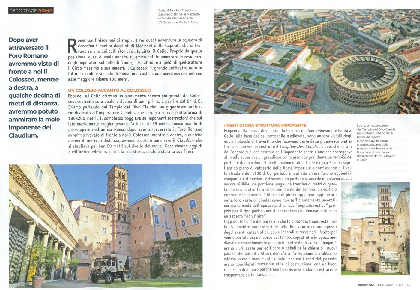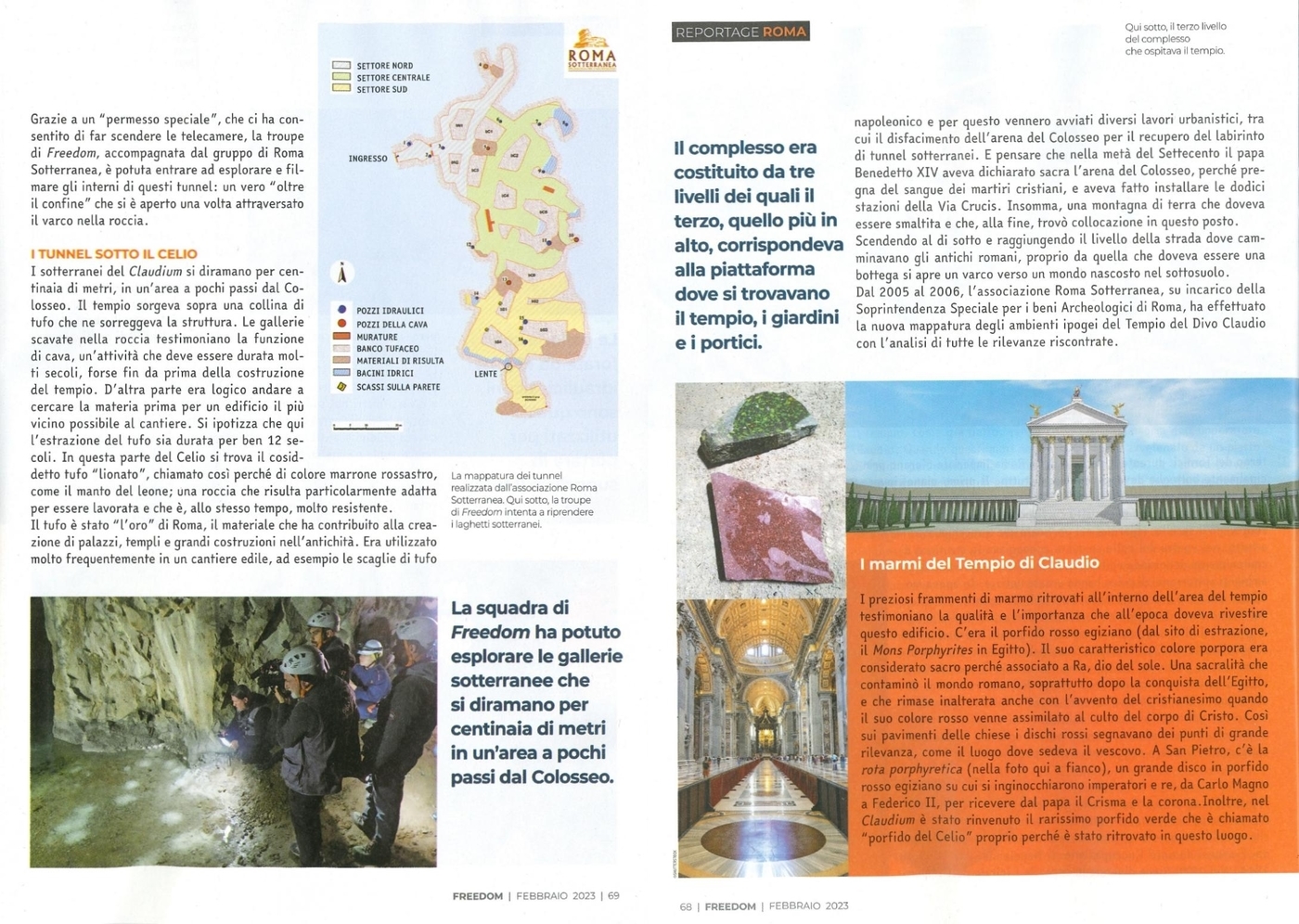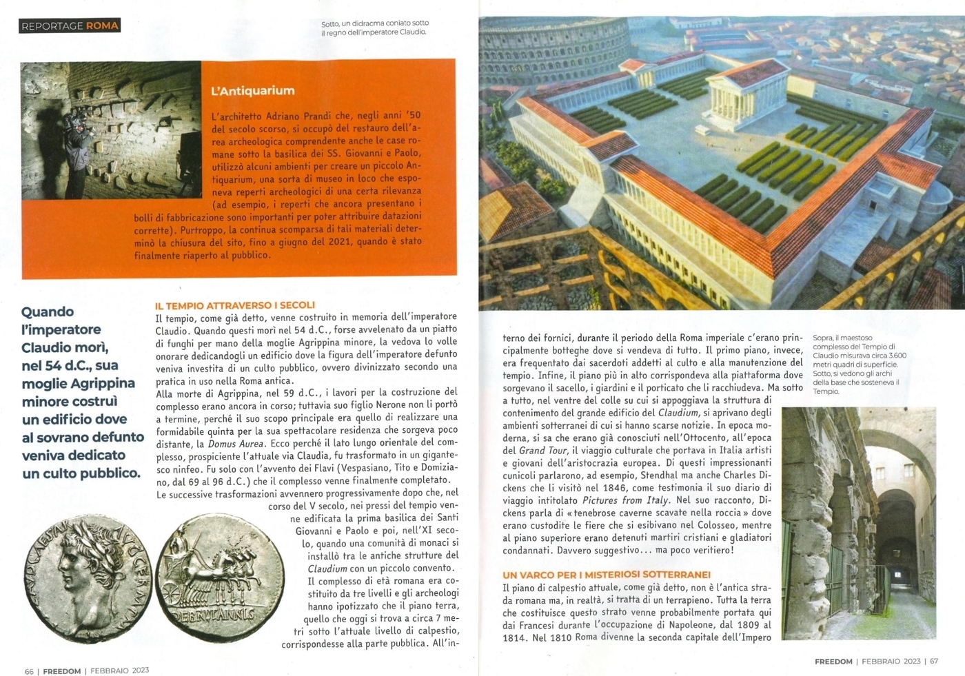 Il servizio pubblicato su questo numero della testata "Freedom - Oltre il confine" è stato realizzato con il supporto di Roma Sotterranea presso gli ambienti sotterranei del Tempio di Claudio.