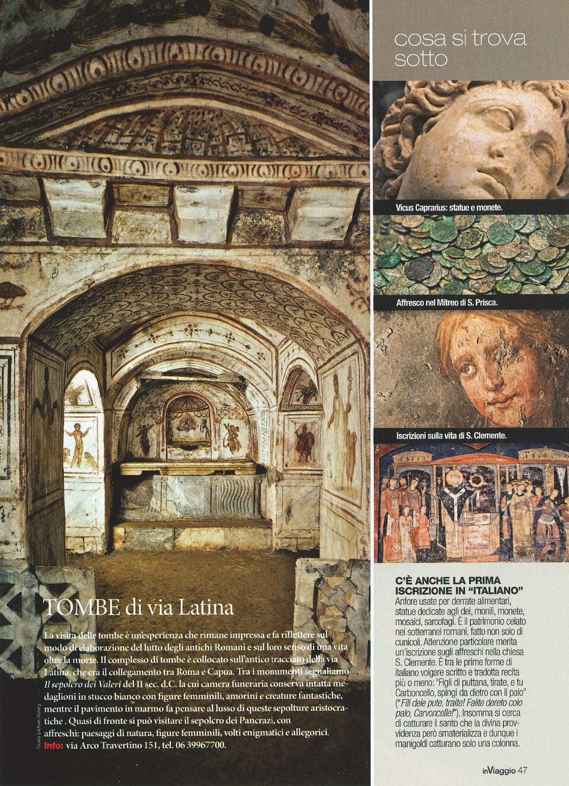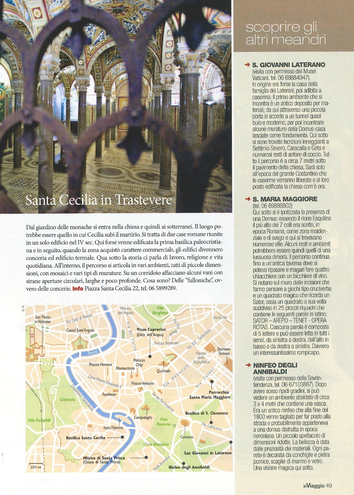 Roma Sotterranea ha collaborato alla realizzazione dell'articolo "Sottoterra c'è un'altra città" pubblicato sul numero monografico dedicato a Roma del mensile "In Viaggio" di settembre 2009. A pagina 46 dell'articolo di Marco Bertolucci, illustrato dalle fotografie di Massimo Brega, Roma Sotterranea è l'organizzazione consigliata per le visite ai sotterranei di Roma.