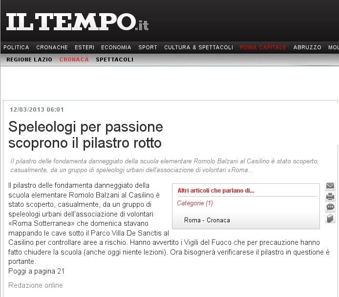 Il pilastro delle fondamenta danneggiato della scuola elementare Romolo Balzani al Casilino è stato scoperto, casualmente, da un gruppo di speleologi urbani dell'associazione di volontari Roma Sotterranea