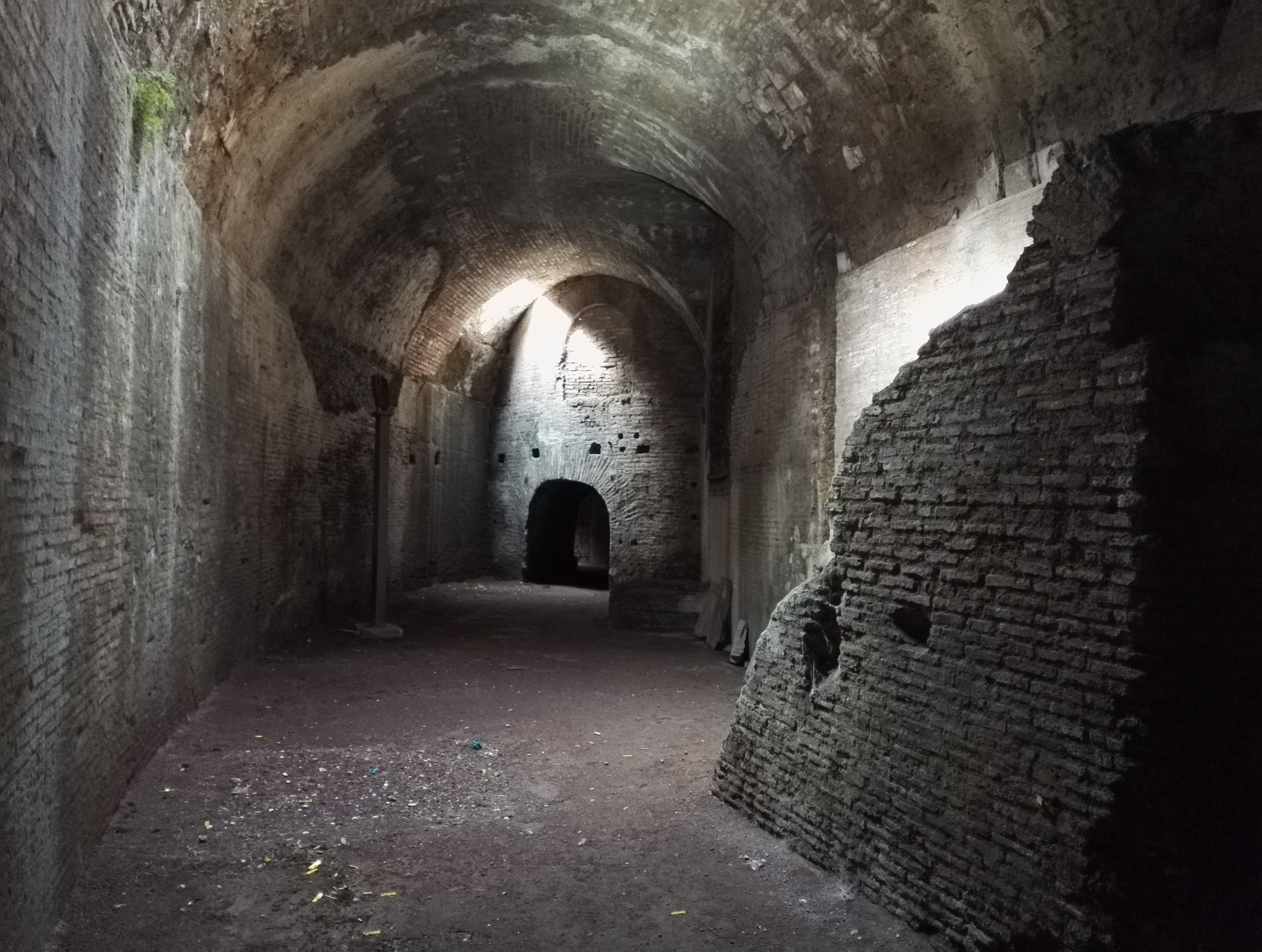 Un primo livello era costituito da una fitta rete di gallerie, alte 6 metri e altrettanto larghe, dove transitavano i carri con la legna e in cui quest'ultima veniva immagazzinata. In queste gallerie sotto il calidarium e il tepidarium sono ancora visibili e conservate le fornaci e i camini.